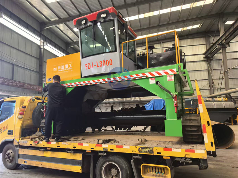 济源3米有机肥履带翻堆机完成装车准备出发:履带翻堆机是一种农业机械设备,主要用于大规模农场和牧场的堆肥处理。它通过其独特的履带设计,能够在各种地形上稳定移动,包括泥泞、不平或湿滑的地面。这种设备通常配备有强大的旋转刀片系统,能够有效地将有机废物、秸秆、粪便等物料进行翻动和混合,促进空气流通,加速分解过程。