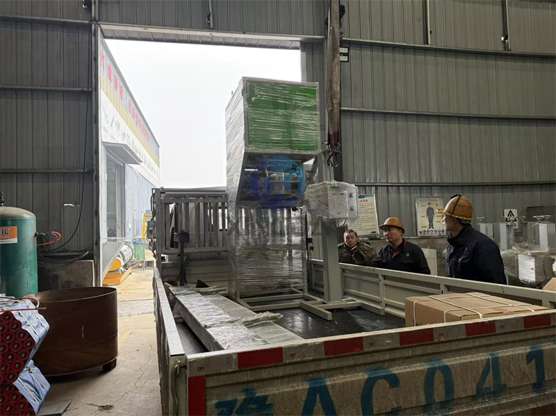 有机肥设备厂区车间正在对一台有机肥包装设备进行装车: