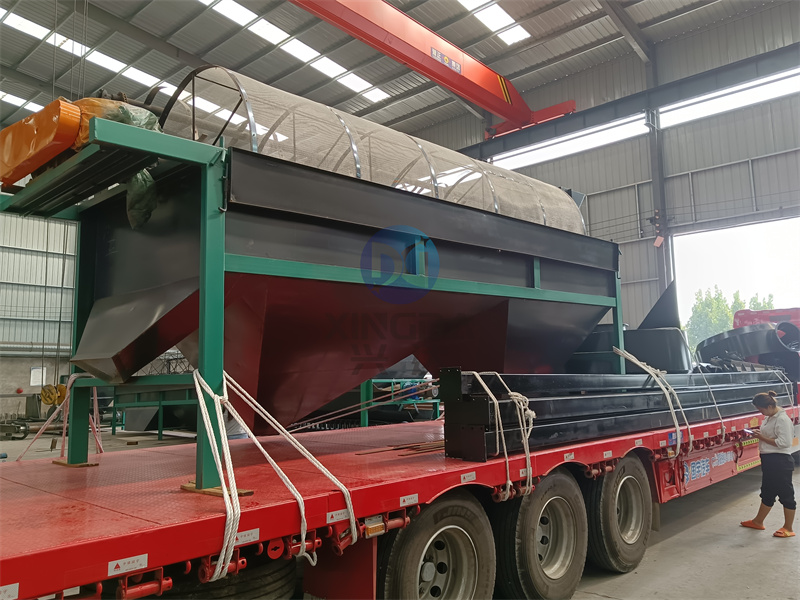 有机肥筛分机装置倾斜安装于机架上.电动机经减速机与滚筒装置通过联轴器连接在一起,驱动滚筒装置绕其轴线