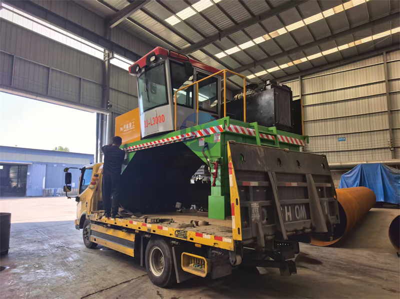 济源3米有机肥履带翻堆机完成装车准备出发:履带翻堆机是一种农业机械设备,主要用于大规模农场和牧场的堆肥处理。它通过其独特的履带设计,能够在各种地形上稳定移动,包括泥泞、不平或湿滑的地面。这种设备通常配备有强大的旋转刀片系统,能够有效地将有机废物、秸秆、粪便等物料进行翻动和混合,促进空气流通,加速分解过程。
