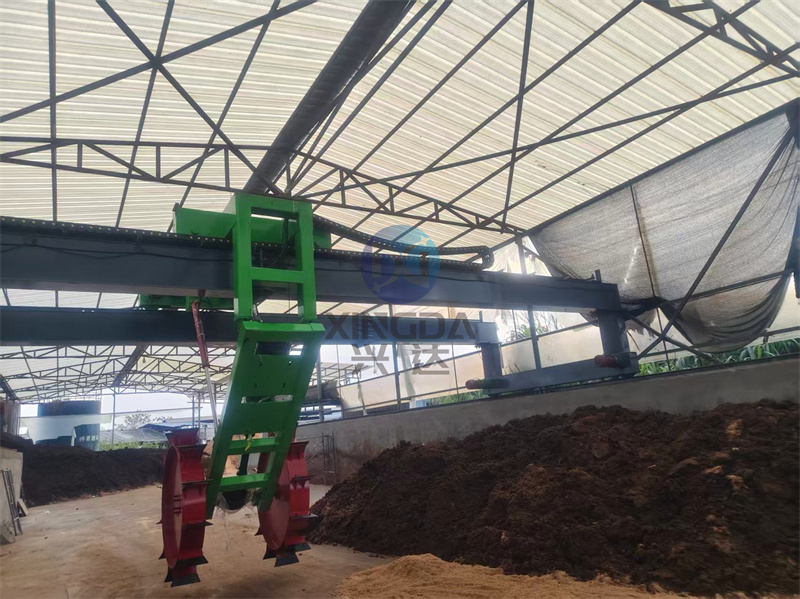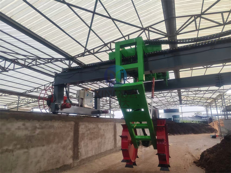 三门峡安装现场:安装人员到达现场后开始对10米有机肥设备轮盘翻抛机进行安装:有机肥设备厂家打造的轮盘翻抛机由主梁行走装置、主梁、翻抛行走装置、翻抛盘、控制系统组合而成。